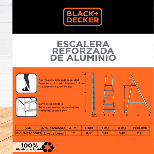 Black & Decker Escalera Aluminio 2 Escalones 150 Kg