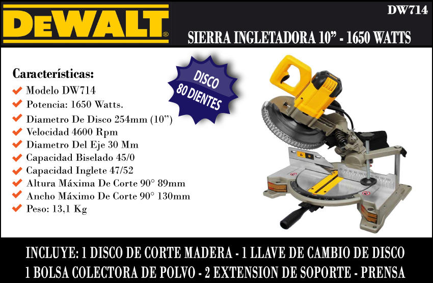 Dewalt Ingletadora 10" 1600w Madera Y Aluminio