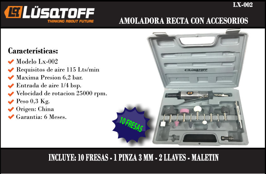Lusqtoff Amoladora Recta Neumatica 1/4 + Accesorios
