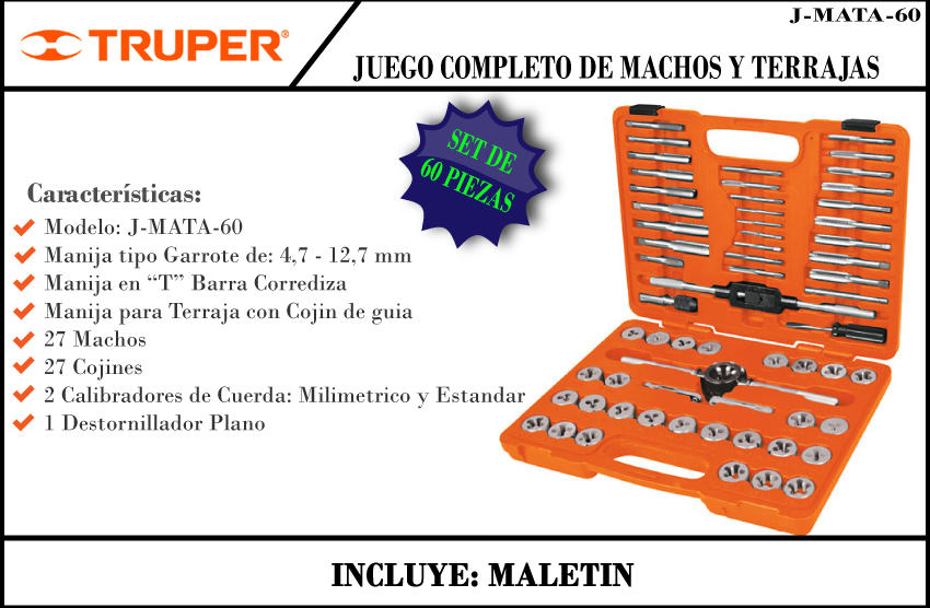 Truper Set 60 Piezas Machos Y Terrajas (11443)