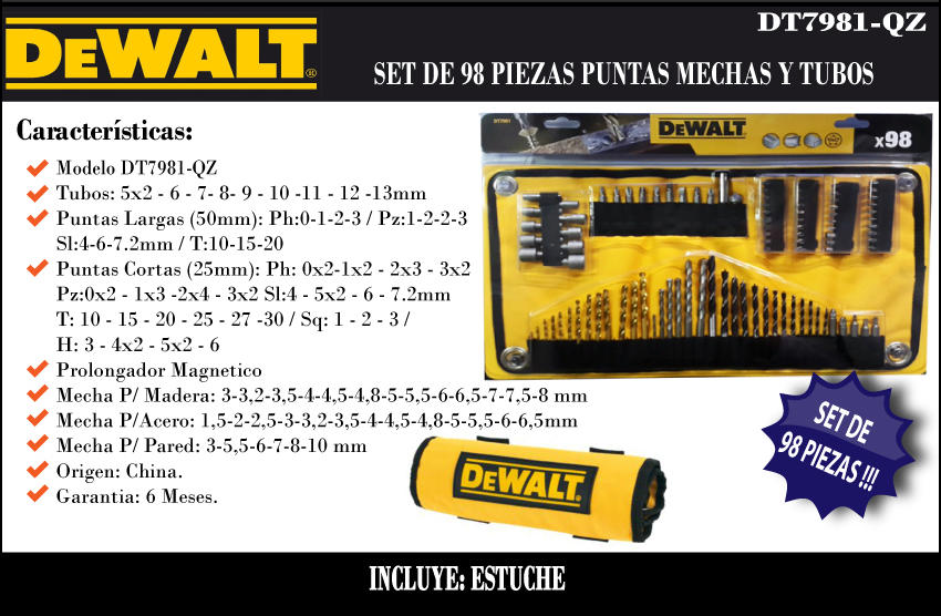 Dewalt Set 98 Piezas Puntas - Mechas - Boquillas