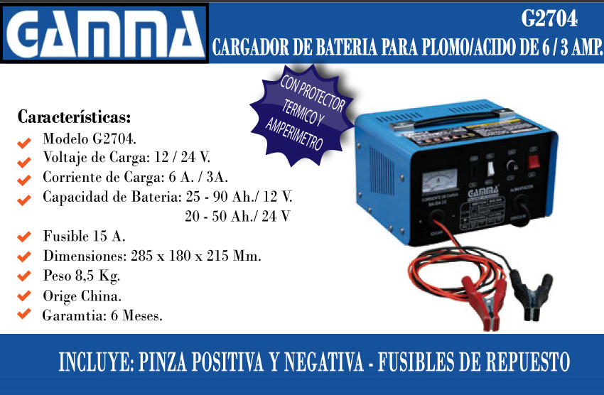 Gamma Cargador 6 A 3 Amp.12/24v. 220 Vca - 50 Hz