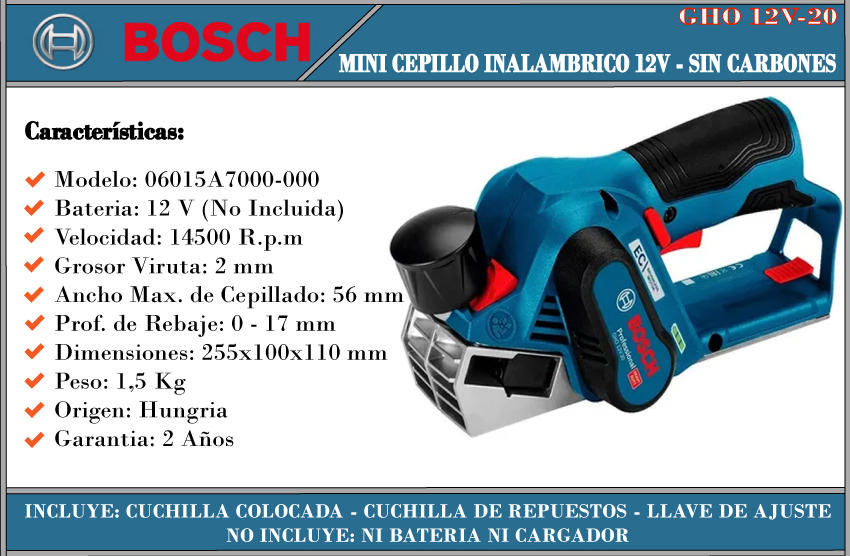 Bosch Mini Ccepillo 12v Gho 12v-20 (sin Bateria - Sin Cargador)