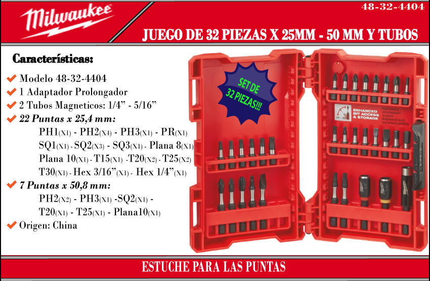 Milwaukee Set 32 Puntas De Impacto - Tubo