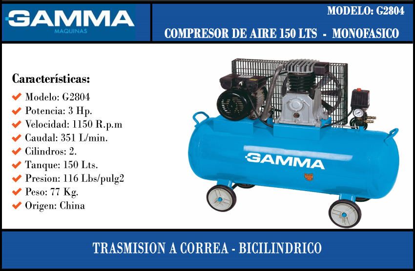 Gamma Compresor 150 Lts 3 Hp Monofasico