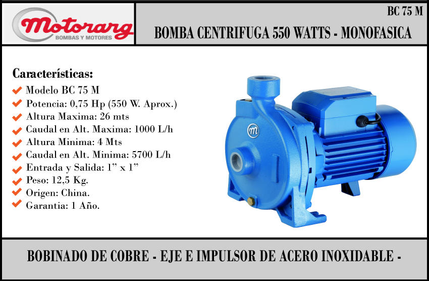 Motorarg Bomba Centrifuga Bc 75m 550 Watts (0.75 Hp)