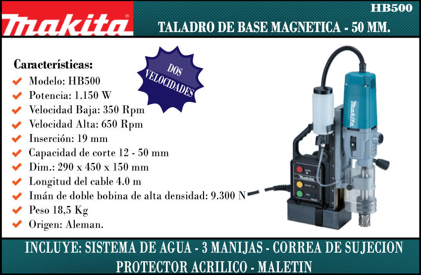 Makita Taladro De Base Magnetica Cap.12-50mm 1150w Enc. 19mm 650rpm