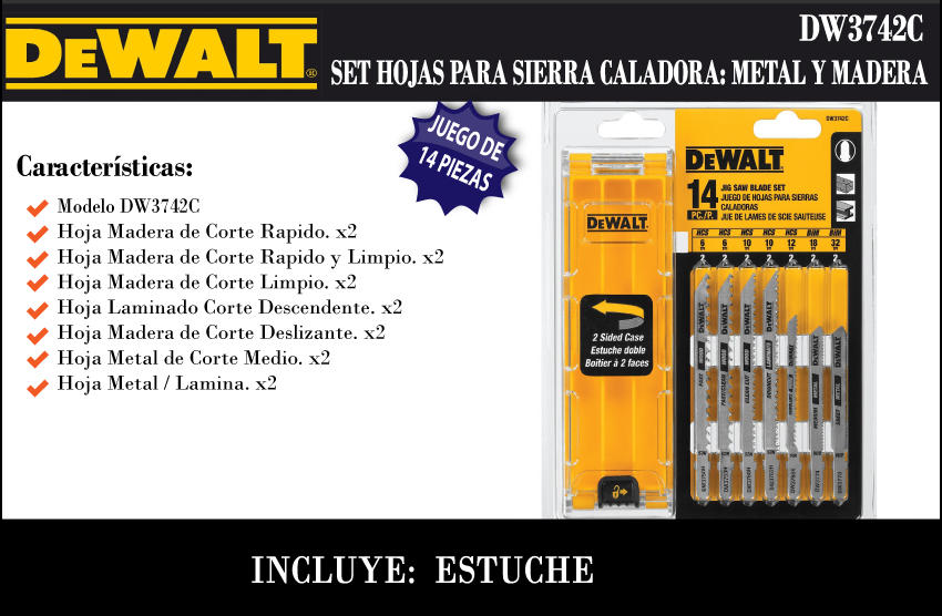 Dewalt Set Hojas Sierra Caladora Surtidas 14 Pzas
