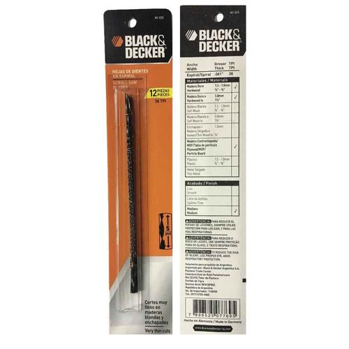Black & Decker Hoja Sierra Caladora Banco 40-625 P/ Dibujo Terminaciones Finas X 12u