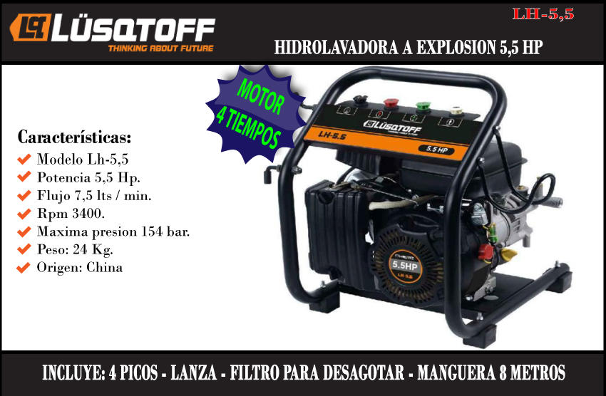 Lusqtoff Hidrolavadora A Explosion 5.5 Hp 154 Bar 7.5 L/min