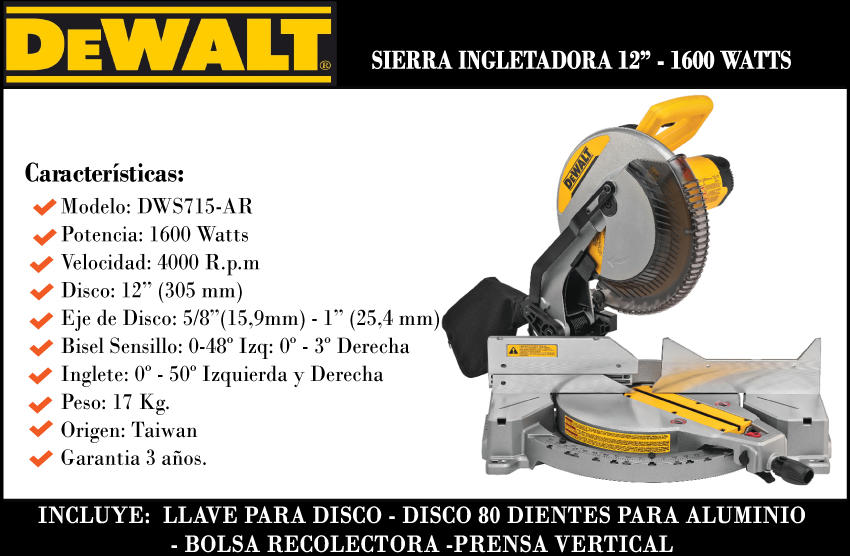 Dewalt Ingletadora 12"1375w Mad Y Alum Dw715-ar