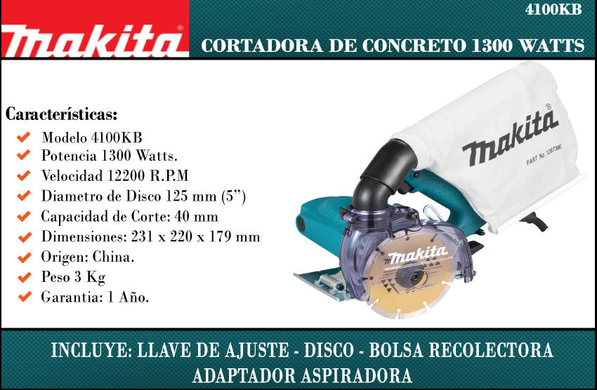 Makita Cortadora De Concreto 1300 Watts 125 Mm