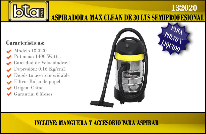 Bta Aspiradora Semiprofesional 30 Lt Inox Plovo/liquido