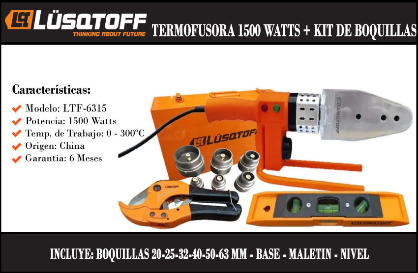 Lusqtoff Termofusora 1500 W + 6 Boquillas Y Maletin