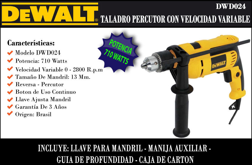Dewalt Taladro 13 Mm Percutor 750 Watts (dwd024)