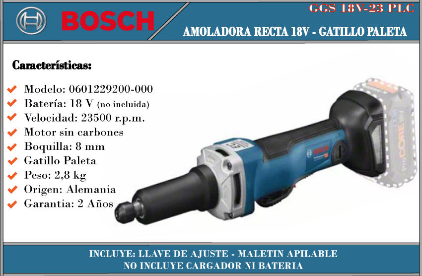 Bosch Amoladora Recta 18v Ggs18v-23 Plc (sin Bateria - Sin Cargador)