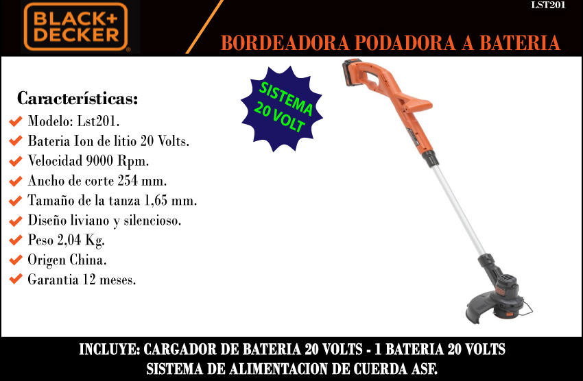 Black & Decker Bordeadora 20v Inalambrica 1 Bateria + 1 Cargador