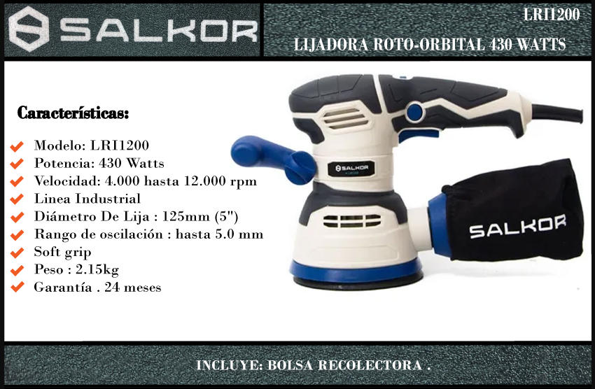 Salkor Lijadora Roto Orbital 430w - 125mm Industrial Azul