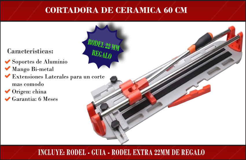 Isard Cortadora Ceramica 60 Cm S/maleta C/ Guia/escuadra Plastica 2 Rodeles