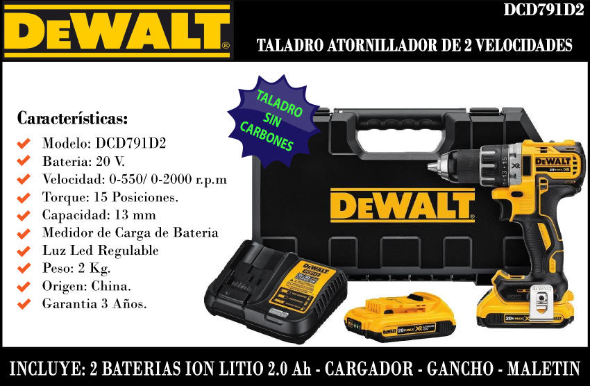 Dewalt Atornillador Taladro 20v 13mm Sin Carbones/brushless (2 Baterias, Cargador, Maletin)
