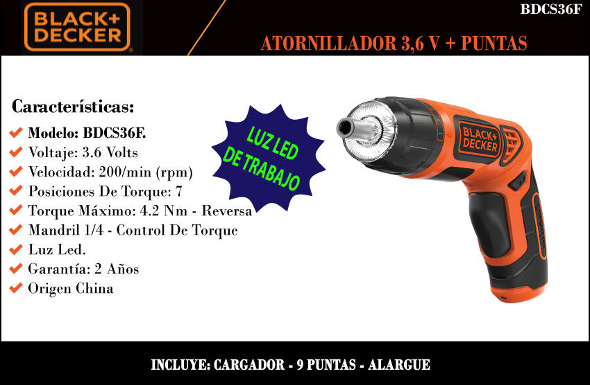 Black & Decker Atornillador 3.6v Articul + 9 Puntas + Prolongador