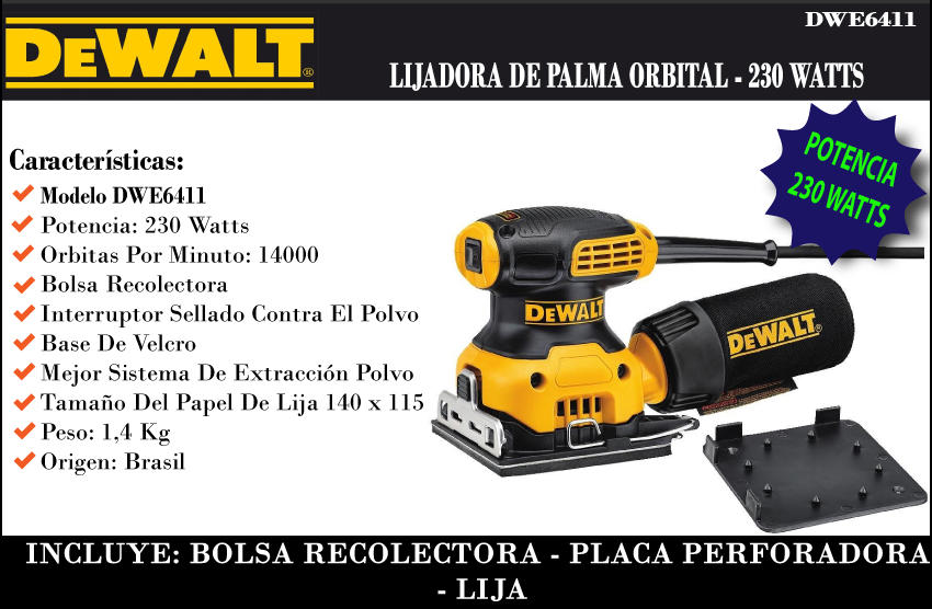 Dewalt Lijadora De Palma 225 Watts - 1/4"
