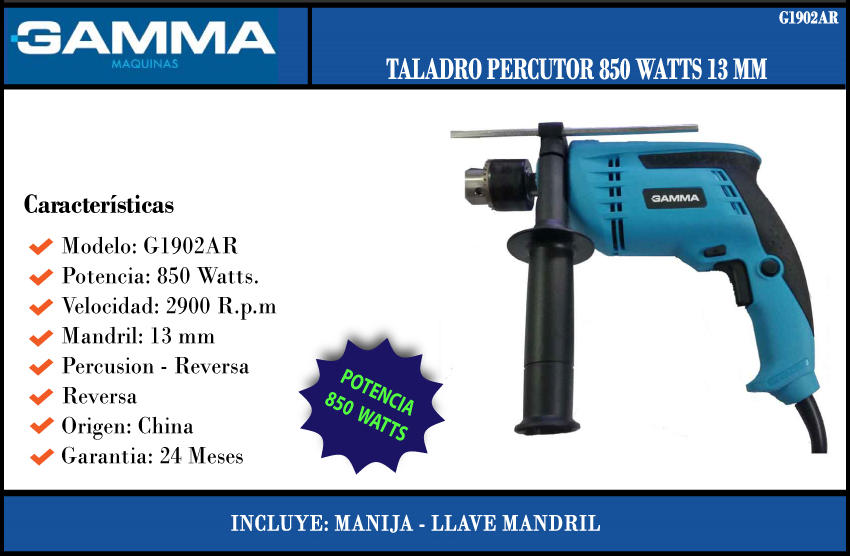 Gamma Taladro Percutor 13 Mm 850w Caja