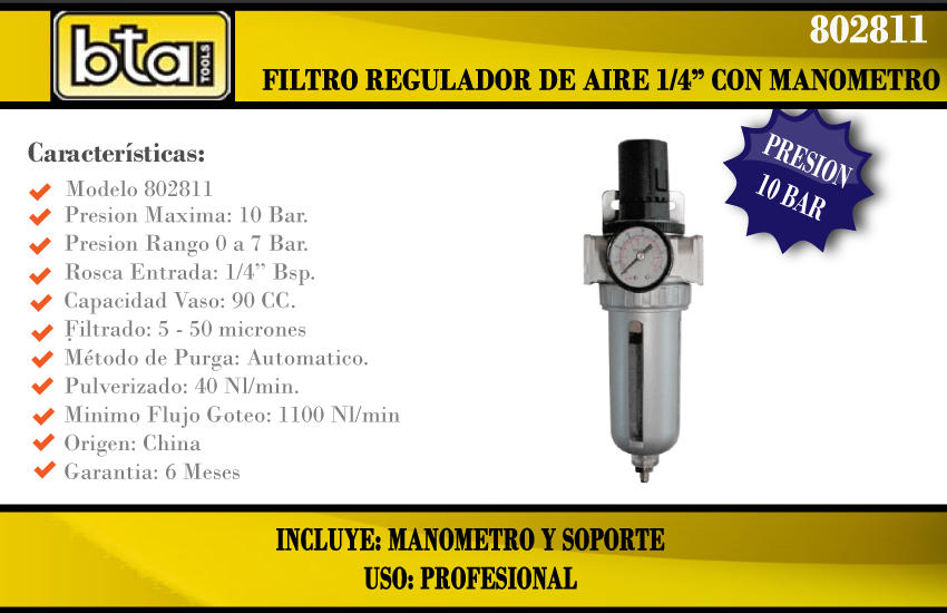 Bta Filtro Regulador De Aire 1/4" Con Manómetro