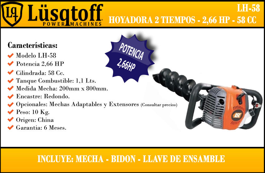 Lusqtoff Hoyadora De 49 Cc. 2tiempos Tanque 1.3 Lt 200x800mm Enc Redondo