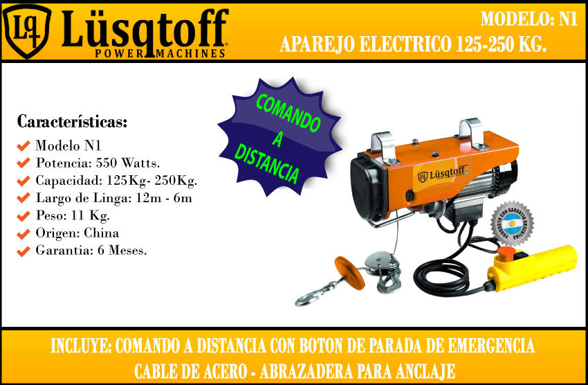 Lusqtoff Aparejo Guinche Electrico 6-12 Mt 125-300 Kg