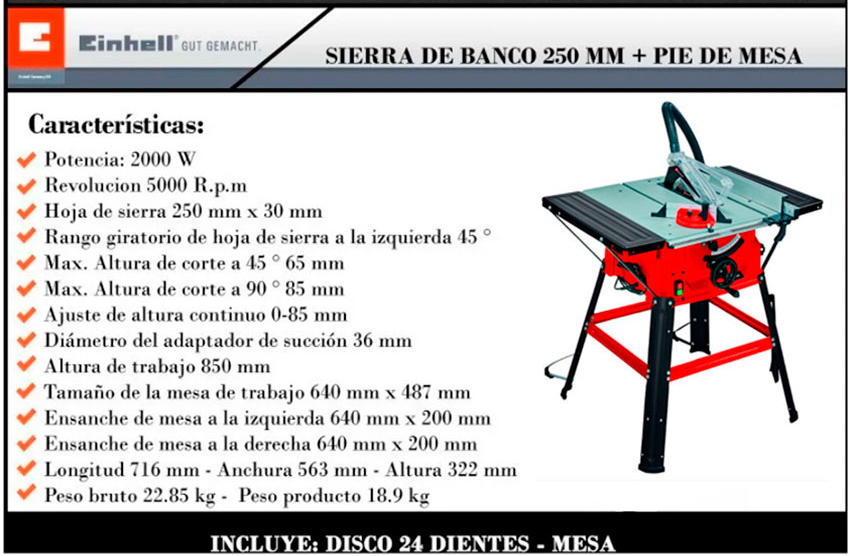 Einhell Sierra Circular De Banco 2000w Tc-ts2025/2