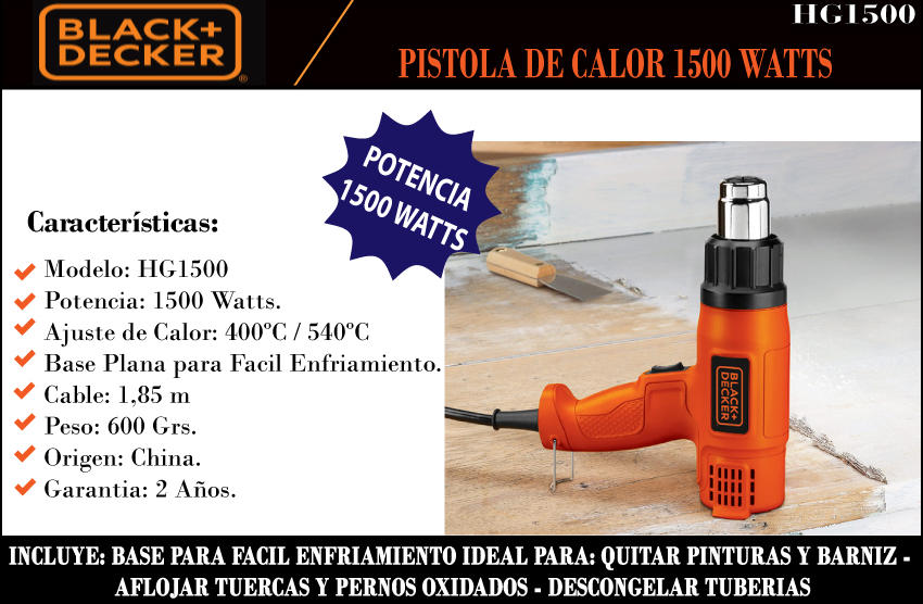 Black & Decker Pistola De Calor 1500w 400ºc-540ºc.
