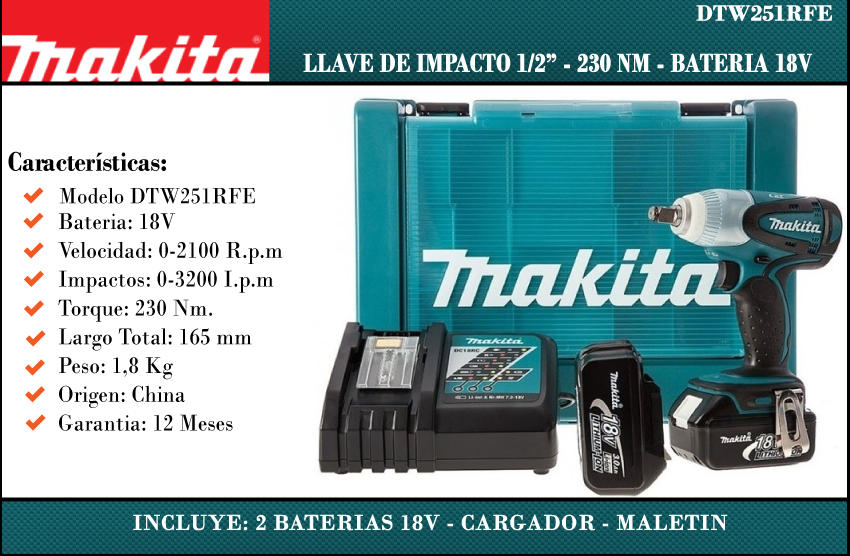 Makita Llave De Impacto 1/2" 18v 230 Nm