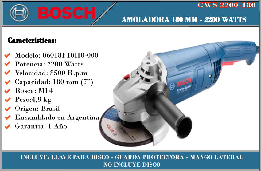 Bosch Amoladora 180 Mm 7" Gws 2200-180 - 2200 W