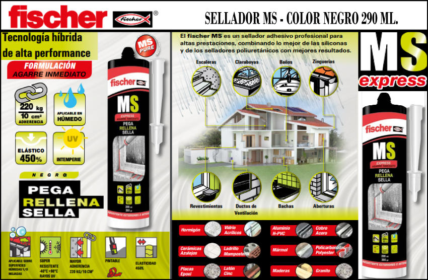 Fischer Sellador Multi Ms Express Sella Pega Rellena Negro 290ml.