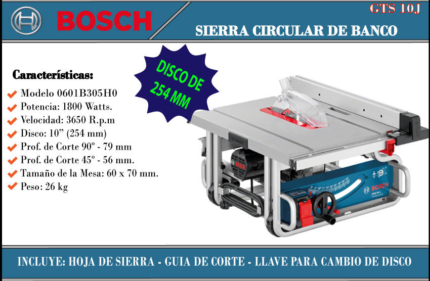 Bosch Sierra Circular De Banco Gts 10j 1800w 10"