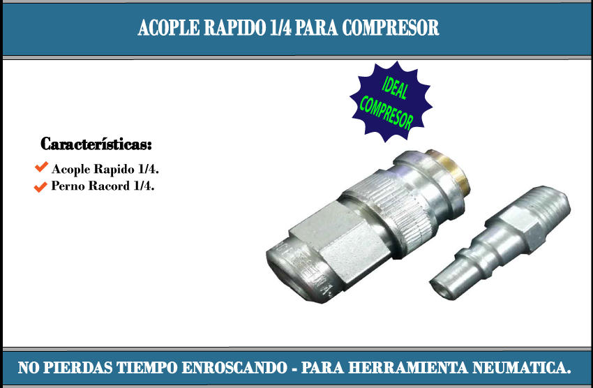 Acople Rapido Completo 1/4 C/perno Para Compresor