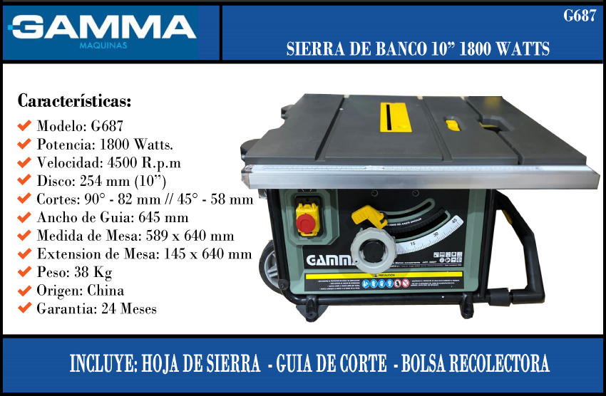 Gamma Sierra Circular De Banco 10" 1800 W Con Ruedas