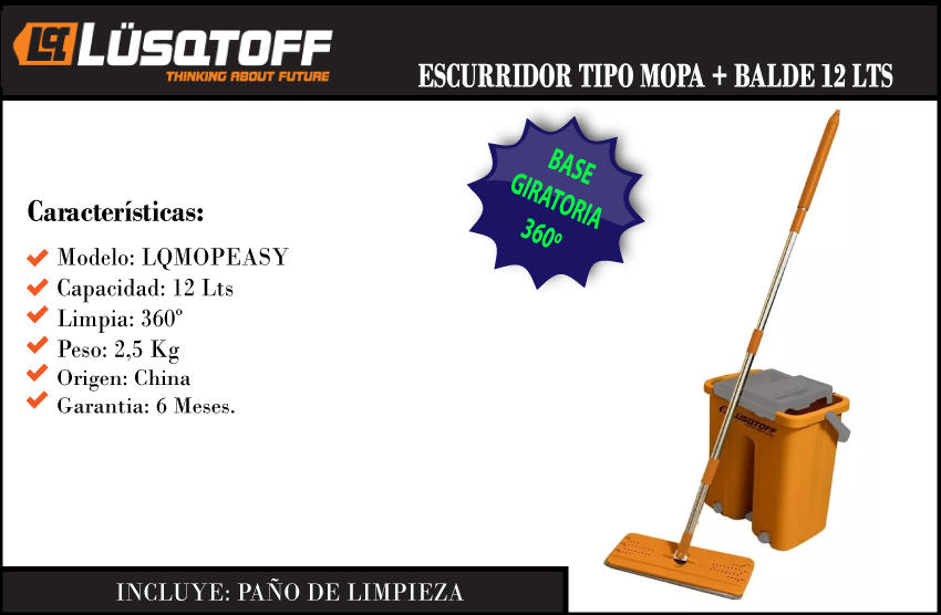 Lusqtoff Mopa Para Pisos Con Cabezal Plano Paño