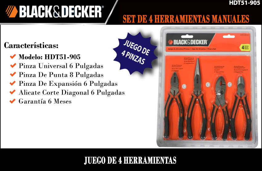 Black & Decker Set 4 Piezas Herramientas Manuales (hdt51905)