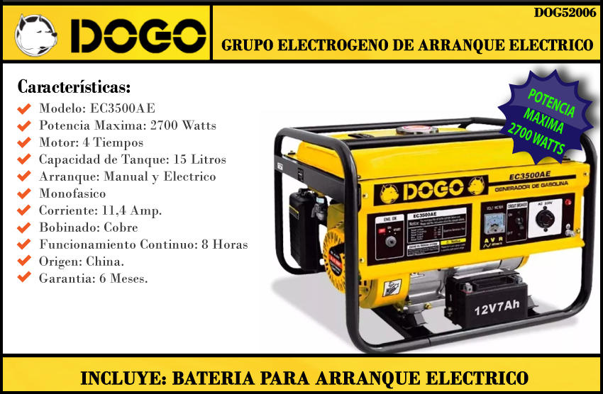 Dogo Grupo Electrogeno 2700w Ec3500ae Electrico Y Manual