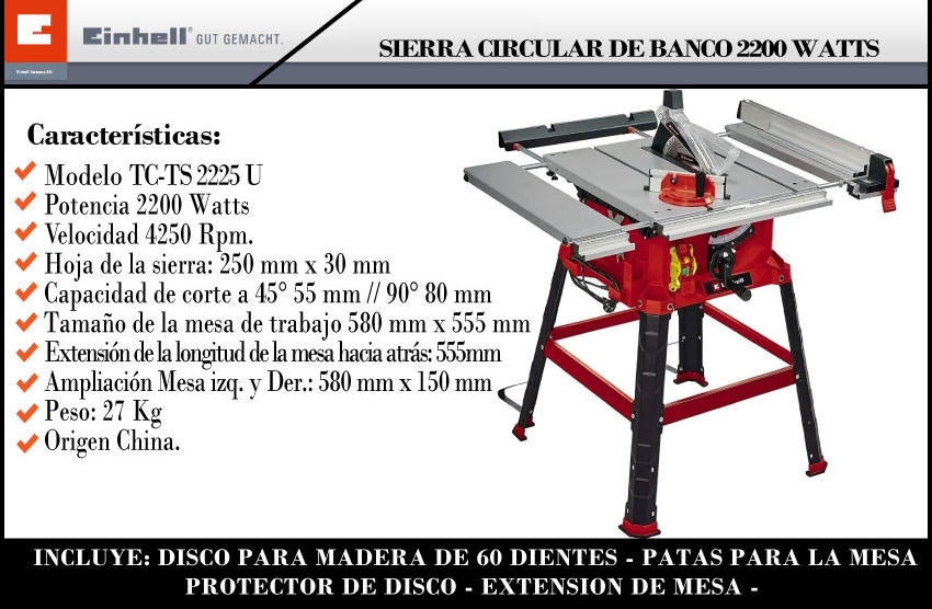 Einhell Sierra Circular De Banco 2200w Tc-ts 2225 U