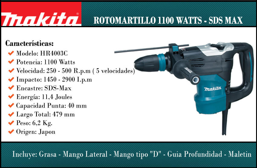 Makita Martillo Rotativo Max Hr4003c 1100w 11,4j 40mm (ex Hr4010c)
