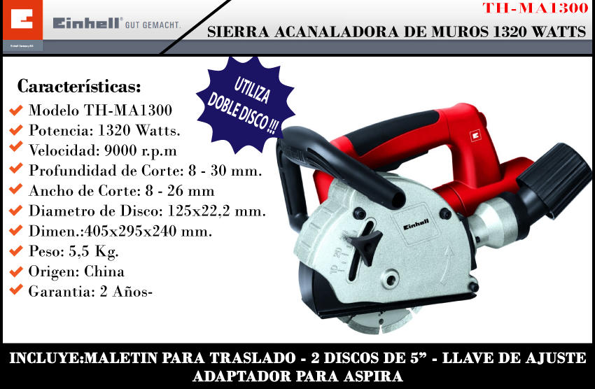 Einhell Acanaladora Concreto 1320w Corte 8 A 30mm