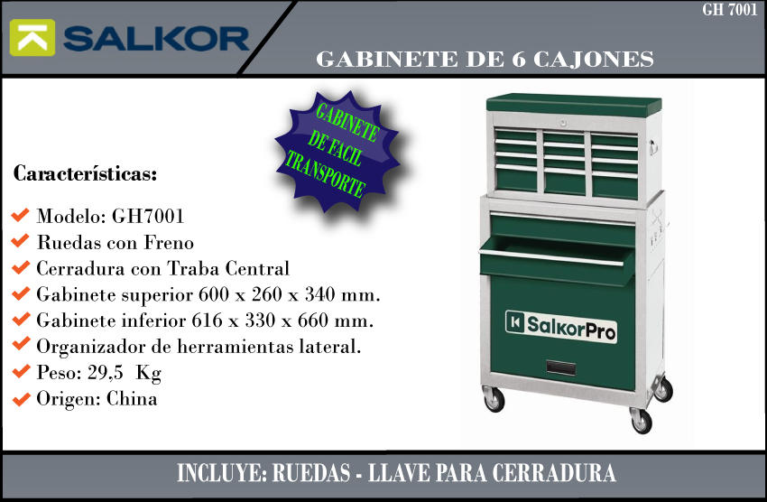 Salkor Carro Metalico Gabinete Taller 2 Cuerpos 6 Cajones