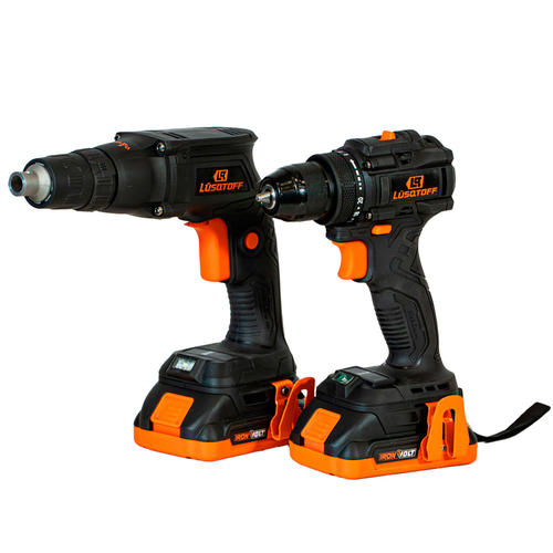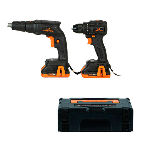 Lusqtoff Kit Atornillador Taladro Percutor 18v + Atornillador C/ Tope Durlock 18v (2 Baterias / Cargador ) + Maletin - Black Series