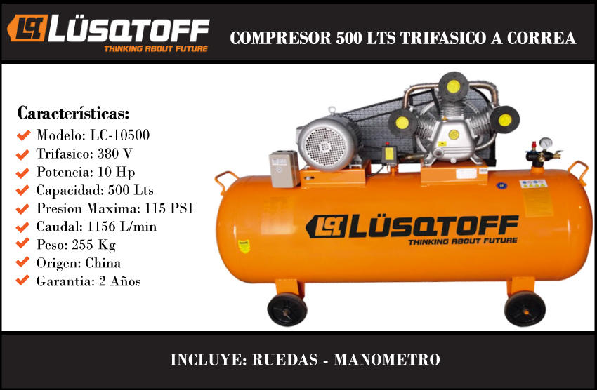 Lusqtoff Compresor 500 Lt 10 Hp A Correa
