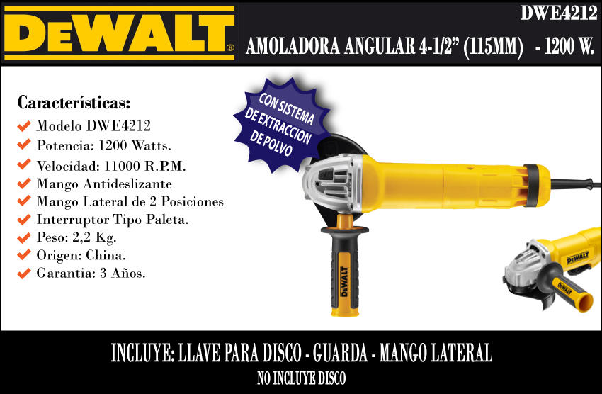 Dewalt Amoladora 115mm 1200w 11000rpm G. Paleta (reemp.28143)
