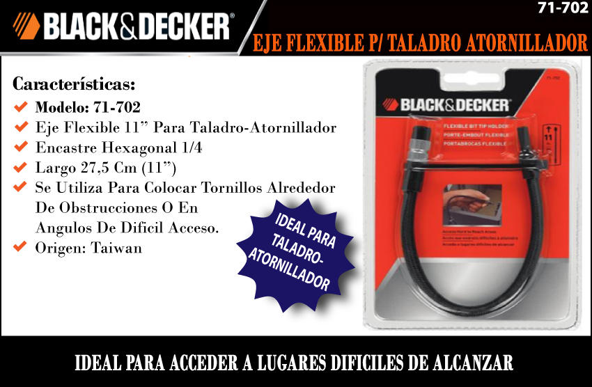Black & Decker Eje Flexible 11'' P/ Taladro Y Atornillador