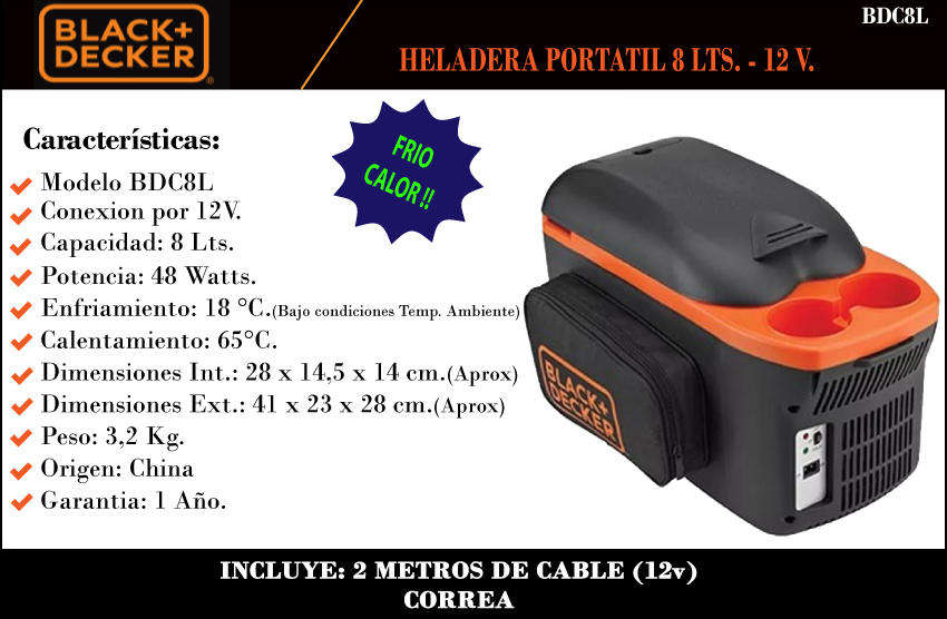 Black & Decker Heladera 12v 8 Lts. Frio/calor